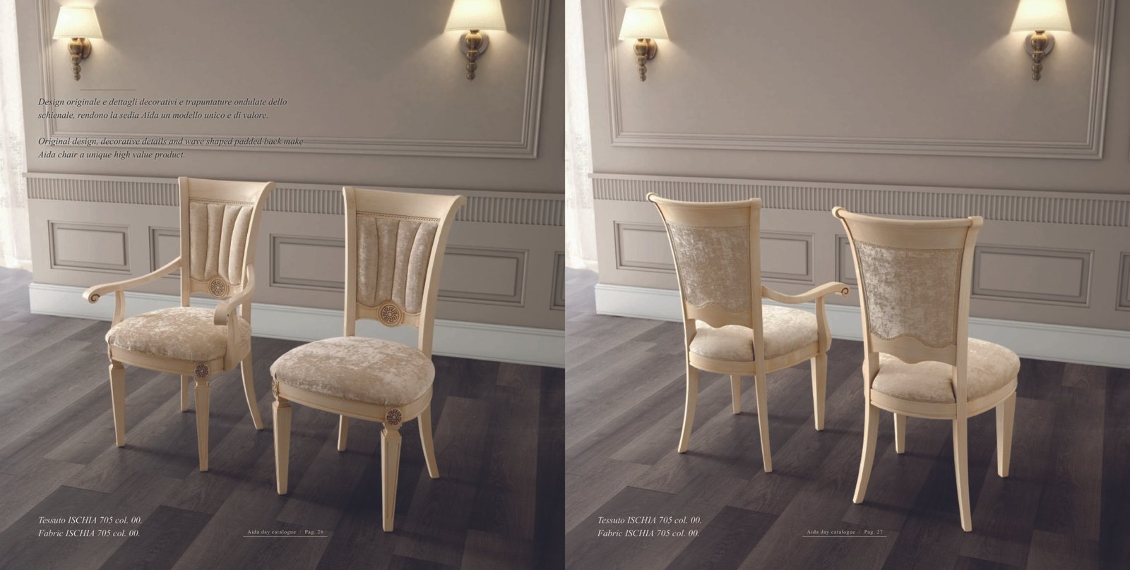 Original design, decorative details and wave shaped padded back make Aida chair a unique high value product.