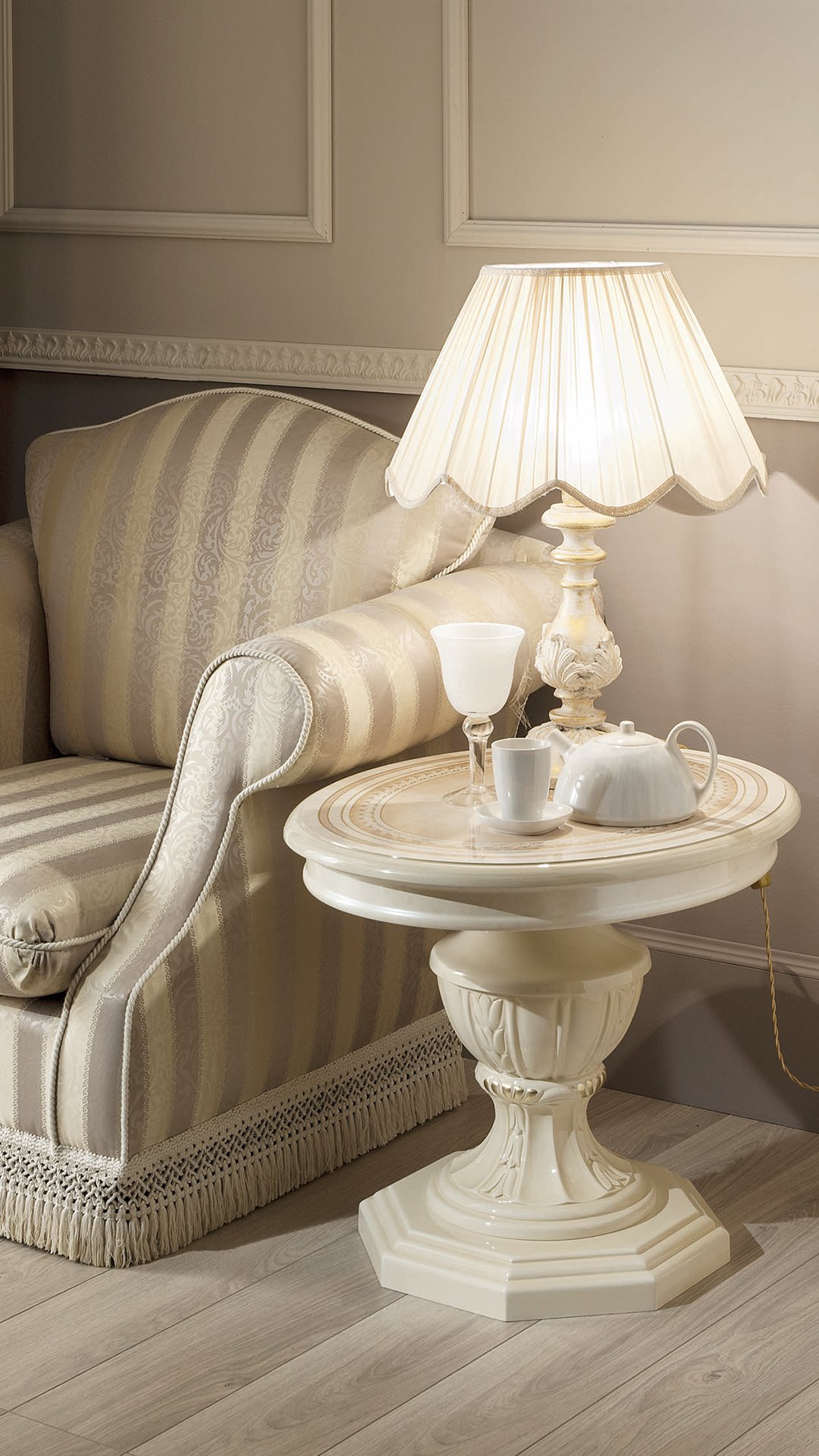 Greta Italian Lamp Table– High Gloss White and Silver / Cream and Gold Tuttomobili