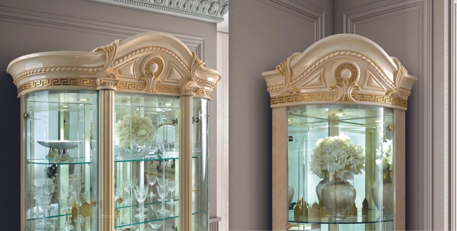 Luxury MEDUSA AIDA Italian Cream & Gold 3 Door Display Cabinet by Camel Group Italy