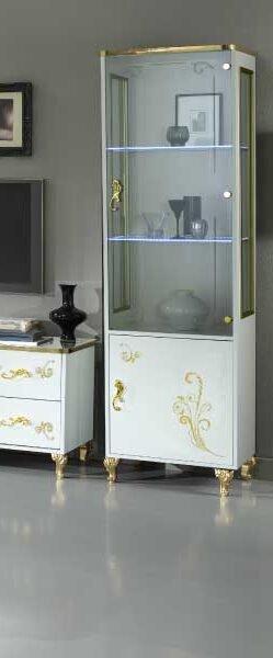 Sofia Italian 1 Door Display Cabinet White / Gold Ben Company