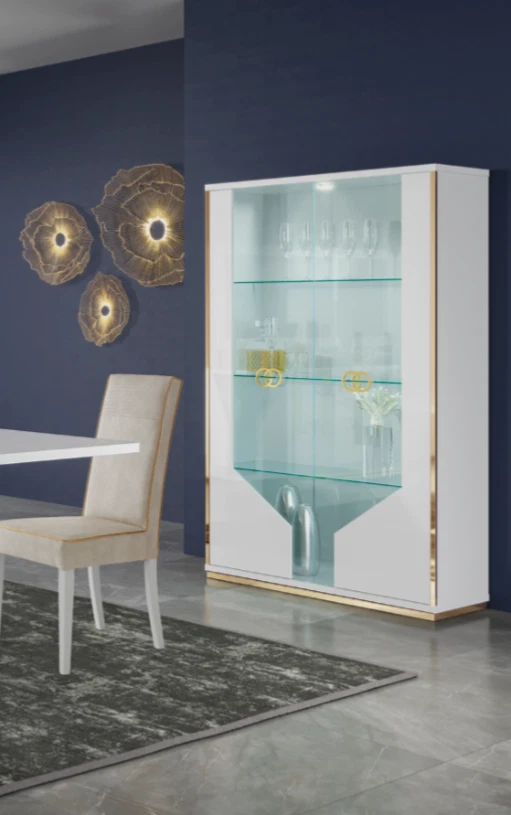 Vogue Italian High Gloss White/Gold 2 Door Display Cabinet